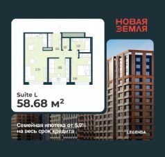 Продается 2-комн. квартира с предчистовой отделкой в ЖК "Новая Земля" на 11 этаже. Общая площадь: 58.68 кв.м., жилая: 20.83 кв.м., площадь просторной кухни-столовой: 21.74 кв.м. Комнаты изолированные, все окна выходят на одну сторону. В квартире один раздельный санузел. Высота потолков 2.85 м.