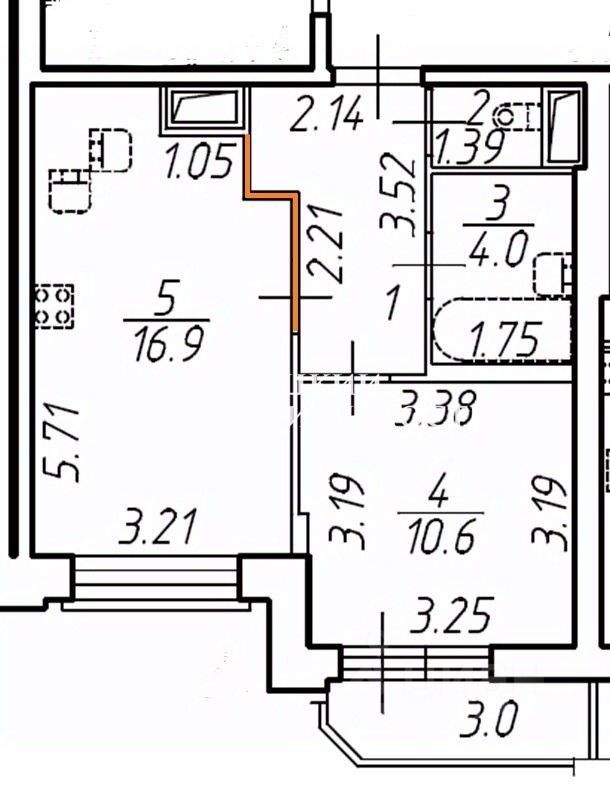 Спальня 10.6 м2 станет уютным местом для отдыха, детской комнаты или кабинета.
