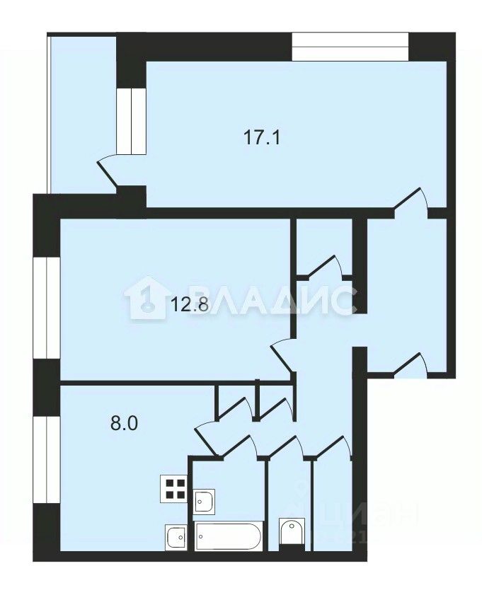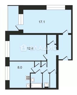 - Квартира с просторной прихожей и двумя большими комнатами. Одна комната 17.1м2 в ней два окна - это дает много солнечного света. Также есть выход на балкон, в котором можно хранить сезонные вещи.