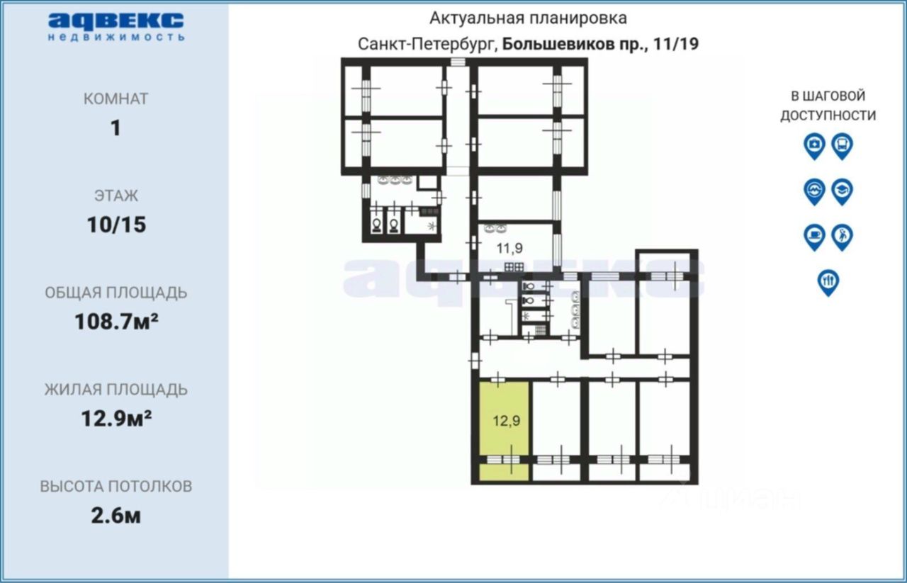 12,9 м²