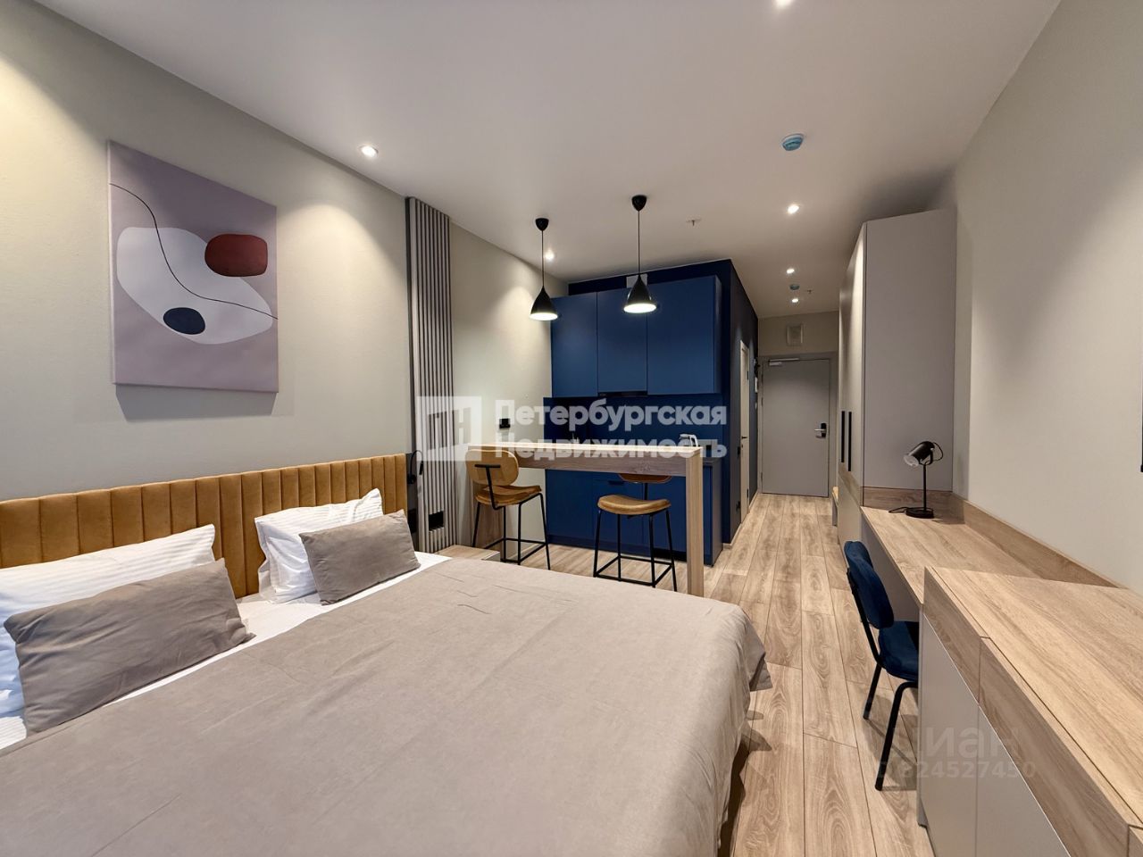 Номер объявления: 20664 - назовите его оператору. В продаже апартаменты-студия с мебелью и техникой в пешей доступности от метро Ладожская.