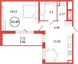 Продаётся 1 комнатная квартира в жилищном комплексе "Энфилд" (корпус Дом 17 секция 2). Общая площадь 50.48 кв. м, площадь комнат 18.52 кв.м. совмещенный санузел. Квартира расположена на 2 этаже 12 этажного дома. Срок сдачи корпуса III квартал 2025 года.