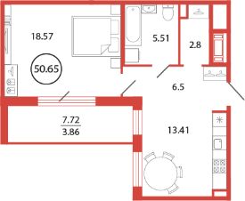 Продаётся 1 комнатная квартира в жилищном комплексе "Энфилд" (корпус Дом 17 секция 2). Общая площадь 50.65 кв. м, площадь комнат 18.57 кв.м. совмещенный санузел. Квартира расположена на 4 этаже 12 этажного дома. Срок сдачи корпуса III квартал 2025 года.