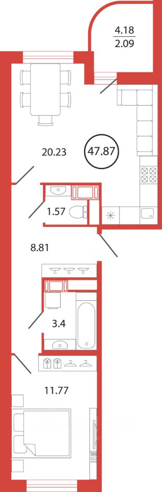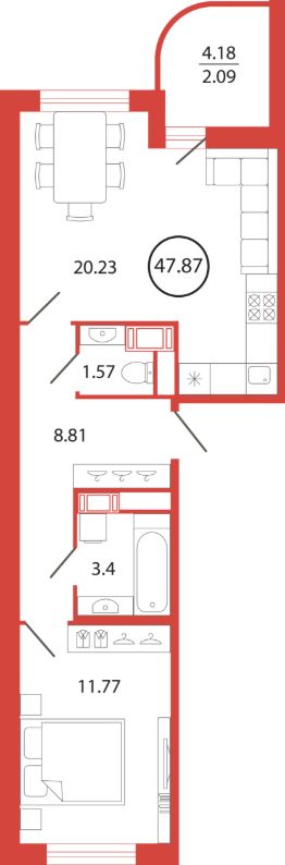 Продаётся e2 комнатная квартира (евро) в жилищном комплексе "Энфилд" (корпус Дом 22 секция 3). Общая площадь 47.87 кв. м, площадь комнат 11.77 кв.м. раздельный санузел. Квартира расположена на 2 этаже 12 этажного дома. Корпус сдан.