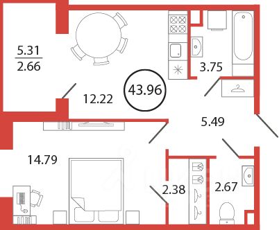 Продаётся 1 комнатная квартира в жилищном комплексе "Энфилд" (корпус Дом 19 секция 8). Общая площадь 43.96 кв. м, площадь комнат 14.79 кв.м. раздельный санузел. Квартира расположена на 2 этаже 12 этажного дома.Корпус сдан.