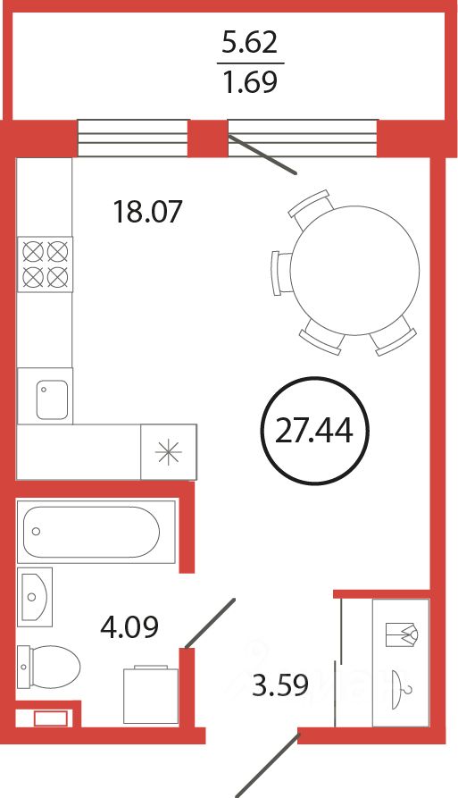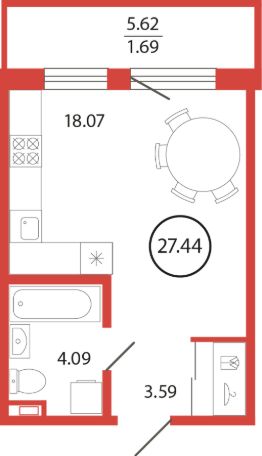 Продаётся студия в жилищном комплексе "Энфилд" (корпус Дом 18 секция 5). Общая площадь 27,44 кв. м, площадь комнат 18,07 кв.м. Санузел. Квартира расположена на 9 этаже 12 этажного дома. Срок сдачи корпуса IV квартал 2027 года.