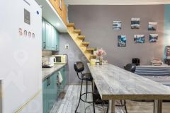 Стильная отделка: Комбинация декоративной штукатурки и акцентных стен, создающая уникальный образ. Напольное покрытие — инженерная доска, приятная на ощупь и долговечная.