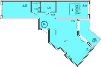 Продаётся 3-комнатная квартира в строящемся доме (Дом 3), срок сдачи: III-кв. 2026, общей площадью 82.1 кв.м., на 3 этаже.