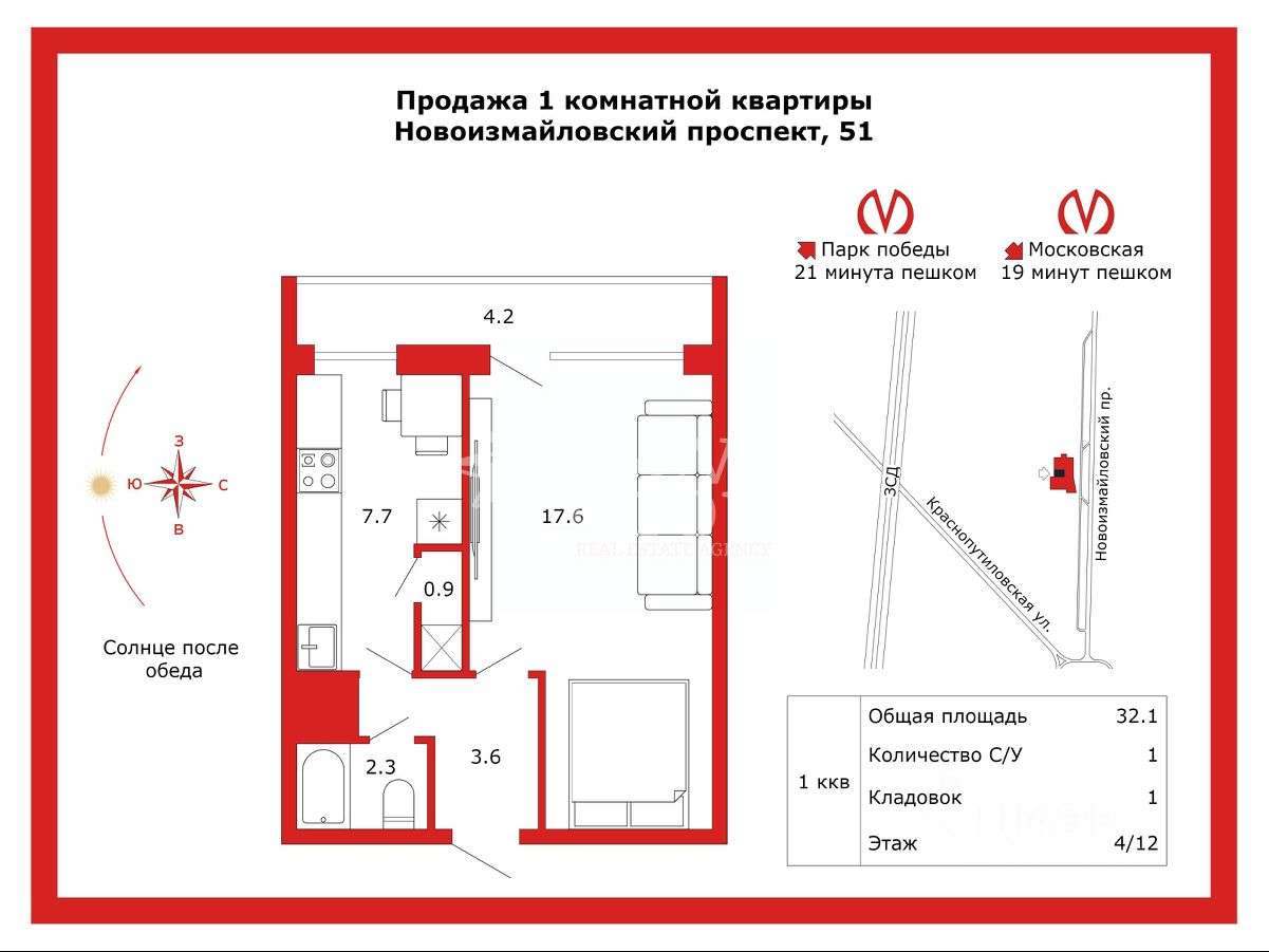 До метро Московская, Парк Победы и Ленинский проспект 17 минут пешком.