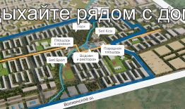 • На территории комплекса запроектированы: зелёные благоустроенные дворы, пешеходные бульвары, рекреационные зоны, будущая инфраструктура с торговыми и бытовыми объектами.