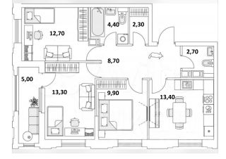 Три отдельных комнаты, гардеробная, два санузла, вместительная кухня 13,4 кв.м - идеально подойдет для семьи с детьми, где каждому найдется свой уютный уголок.