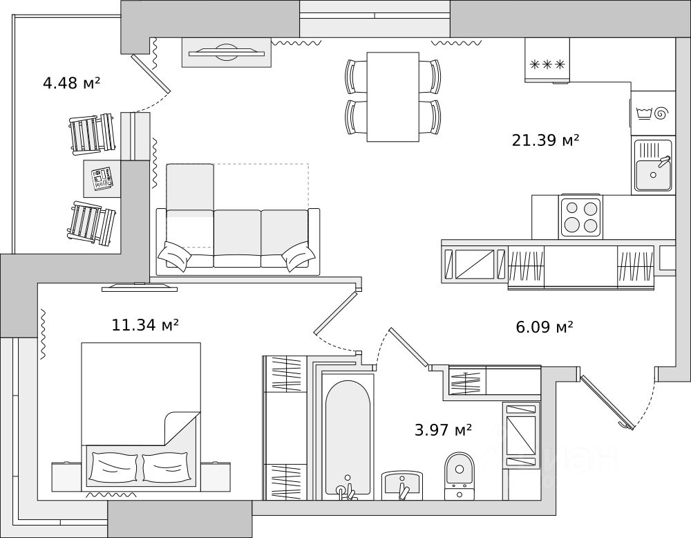 При покупке квартиры без участия агентов дарим сертификат новосела в магазин HOFF на сумму 50 000 рублей. Им можно оплатить не более 15% от суммы покупки.