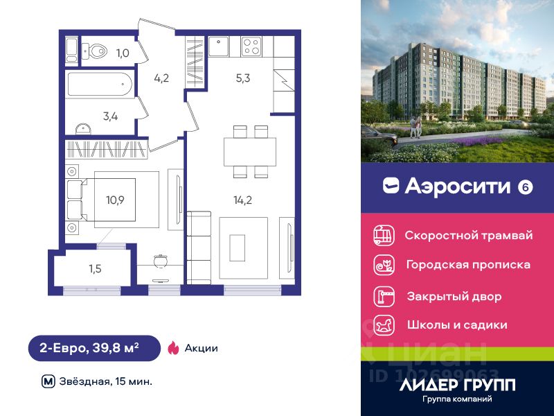 Кирпично-монолитный комплекс с уникальными планировочными решениями, в котором все квартиры предусматривают полную отделку "под ключ". В доме установлено лифтовое оборудование OTIS со спуском в паркинг, IP-домофония, есть охрана, выполнена коллекторная разводка отопления. Закрытый двор с детскими и спортивными площадками. В каждой парадной есть помещение для колясок и велосипедов, магазины, пекарни и ПВЗ на 1-м этаже. Две школы и два детских сада работают прямо через дорогу. Строится две поликлиники и линия скоростного трамвая. 20 минут на автобусе до двух станций метро "Звездная" и "Купчино", городская прописка. Квартиры с полной отделкой, 2 школы и 2 детских сада рядом с домом.100 машино-мест в подземном паркинге - лифты спускаются в паркинг.