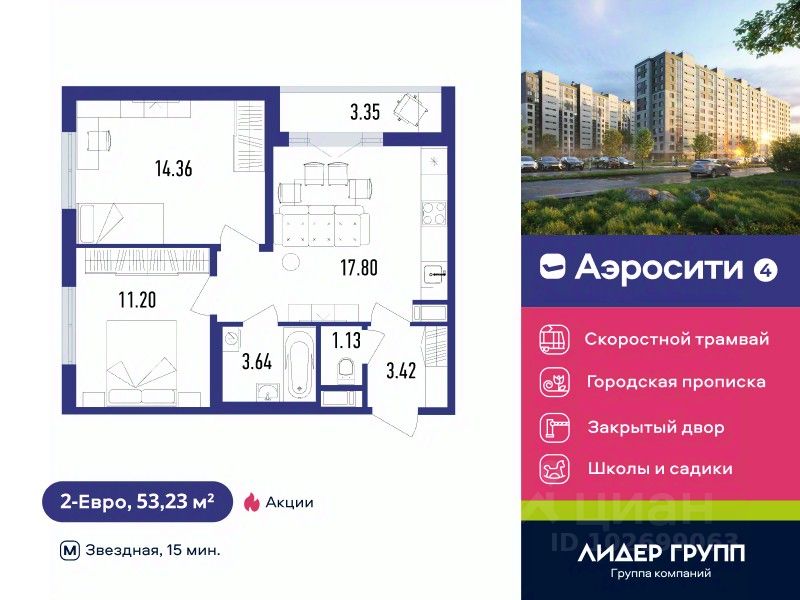12-ти этажный монолитный комплекс, состоящий из двух корпусов на 923 квартиры. Дом примыкает к давно сформировавшейся части района. Рядом расположены остановки общественного транспорта, магазины и социальные учреждения. В составе проекта возводится поликлиника. В ближайшей перспективе рядом с ЖК появится остановка бесшумного скоростного трамвая. В 2-х минутах ходьбы работаю две школы и два детских сада. Скидка 1% жителям района.