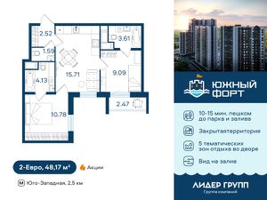 Скидка 1% жителям района. Жилой комплекс комфорт-класса "Южный Форт" возводится на юго-западе Санкт-Петербурга в Красносельском районе. Два современных разноэтажных корпуса расположены между гаванью Финского залива и Южно-Приморским парком, на перекрёстке улиц Доблести и Маршала Казакова. До строящейся станции метро "Юго-Западная" всего 2,5 км. В проекте много квартир с видом на Финский залив. Рядом запланировано строительство детского сада. Двор закрыт от посторонних и машин, есть собственный пешеходный променад, предусмотрена охрана и видеонаблюдение. На первом этаже, помимо магазинов и пекарен, разместиться библиотека с мультимедийным пространством.На расстоянии 900 метров Южно-Приморский парк, площадью 58 гектаров. 15 минут пешком до пляжа на берегу Финского залива. Рядом прогулочная набережная Дудергофского канала, два больших фитнес-центра. На квартиры ЗПИФ или переуступки семейная ипотека не распространяется!