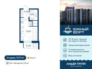 Скидка 1% жителям района. Жилой комплекс комфорт-класса "Южный Форт" возводится на юго-западе Санкт-Петербурга в Красносельском районе. Два современных разноэтажных корпуса расположены между гаванью Финского залива и Южно-Приморским парком, на перекрёстке улиц Доблести и Маршала Казакова. До строящейся станции метро "Юго-Западная" всего 2,5 км. В проекте много квартир с видом на Финский залив. Рядом запланировано строительство детского сада. Двор закрыт от посторонних и машин, есть собственный пешеходный променад, предусмотрена охрана и видеонаблюдение. На первом этаже, помимо магазинов и пекарен, разместиться библиотека с мультимедийным пространством.На расстоянии 900 метров Южно-Приморский парк, площадью 58 гектаров. 15 минут пешком до пляжа на берегу Финского залива. Рядом прогулочная набережная Дудергофского канала, два больших фитнес-центра. На квартиры ЗПИФ или переуступки семейная ипотека не распространяется!