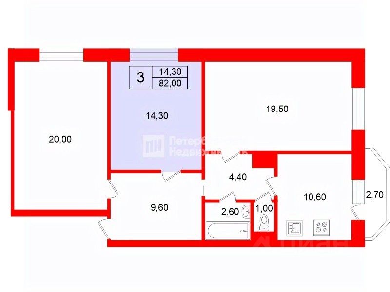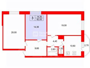 14,3 м²