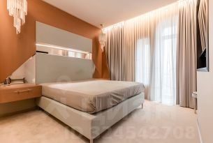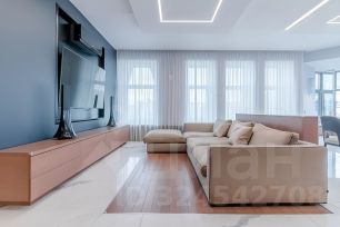 В центре квартиры большая гостиная с камином, уютная зона отдыха с мягкими удобными диванами, из эркерных окон открывается прекрасный вид на город. В квартире 3-и спальни, две ванные комнаты, две столовые зоны, игровая комната для ребенка, большая гардеробная комната расположена рядом с мастерспальней. Из спален можно выйти на балконы и полюбоваться прекрасными видами.
