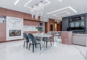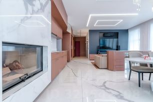 Квартира выглядит модно и стильно, ремонт выполнен по индивидуальному дизайн-проекту. В дизайне интерьеров использованы только натуральные материалы, при оформлении внутреннего пространства использована спокойная цветовая гамма.