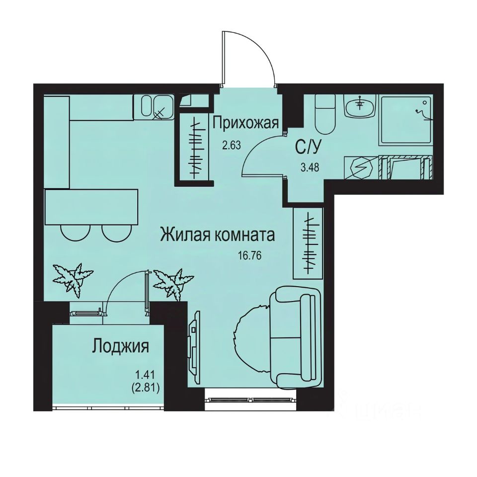 16,8 м²