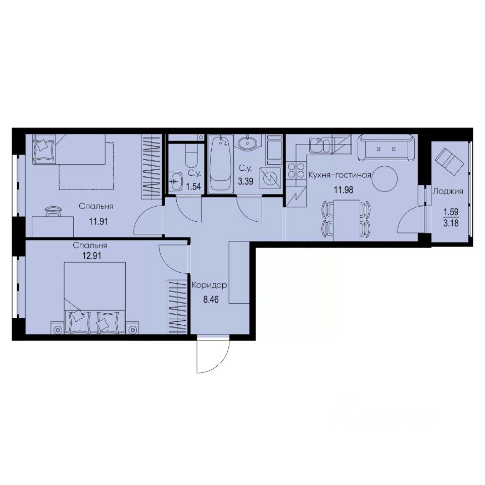Общая площадь51,78 м²