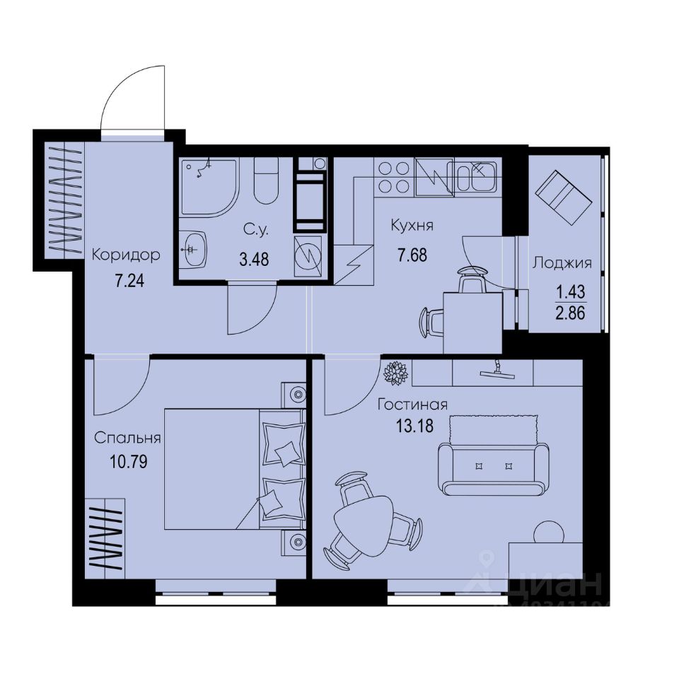 Общая площадь43,8 м²