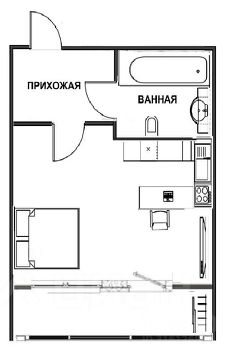 Общая площадь квартиры 24.1 кв.м + широкая застекленная лоджия со встроенным шкафом-дополнительным местом для хранения. Санузел раздельный, очень вместительный-большая ванная и стиральная машина располагаются достаточно свободно.