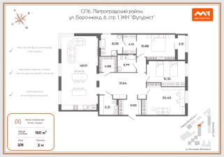 Представляем вашему вниманию 3-комнатную квартиру площадью 160 м² с безупречной европланировкой, включающей просторную кухню-гостиную 49 м² с большим количеством окон, внушительный холл площадью 22 м², три спальни, одна из которых мастер-спальня с собственной гардеробной и санузлом. Всего в квартире предусмотрены три санузла, хозблок и две гардеробные. Данная квартира - идеально подготовленное пространство для воплощения интерьера вашей мечты! Капитальные черновые работы выполнены (демонтаж старых и возведение новых перегородок, которые значительно улучшили функциональный метраж квартиры, разводка электрики). Также имеется готовый дизайн-проект, который будет передан новому собственнику, позволяющий при желании реализовать уже продуманный интерьер. А установленная премиальная система очистки и увлажнения воздуха стоимостью более 3 млн ₽ круглый год будет обеспечивать безупречный микроклимат в квартире.