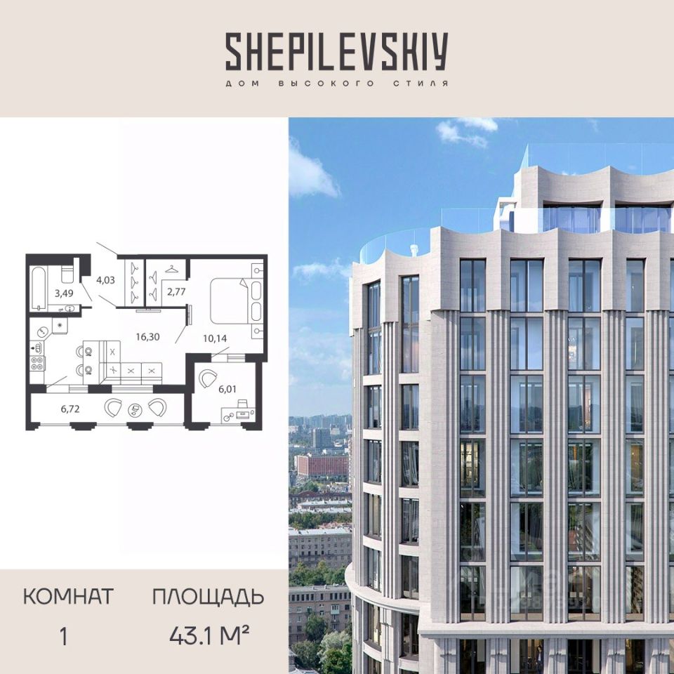 1-ком. квартира 161 на 17 этаже в секции 2 Дома SHEPILEVSKIY (Шепилевский)