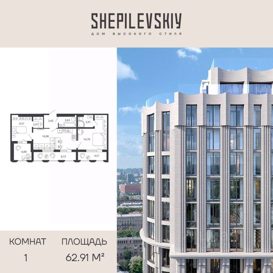 1-ком. квартира 78 на 19 этаже в секции 1 Дома SHEPILEVSKIY (Шепилевский)