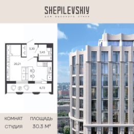 Студия 23 на 7 этаже в секции 1 Дома SHEPILEVSKIY (Шепилевский)