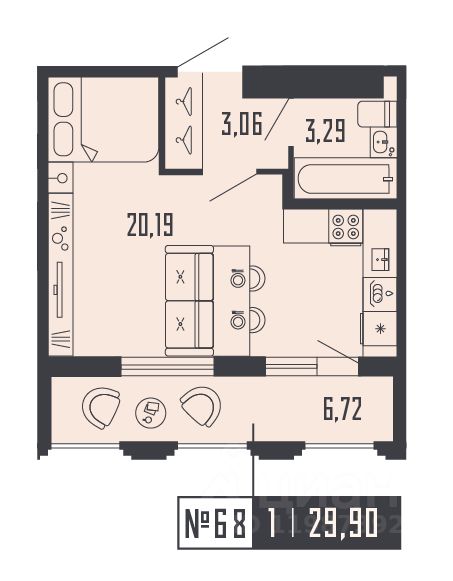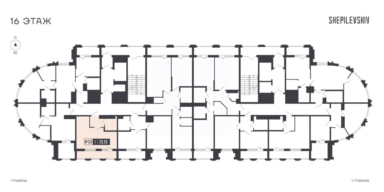 Студия 68 на 16 этаже в секции 1 Дома SHEPILEVSKIY (Шепилевский)