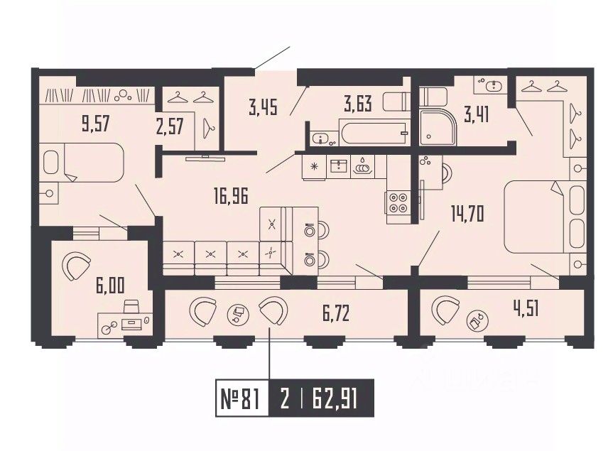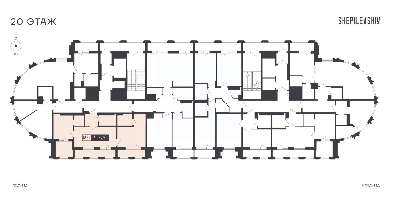 1-ком. квартира 81 на 20 этаже в секции 1 Дома SHEPILEVSKIY (Шепилевский)