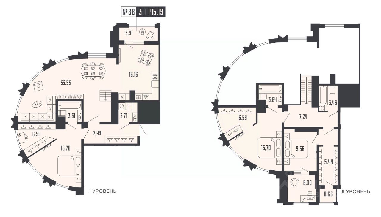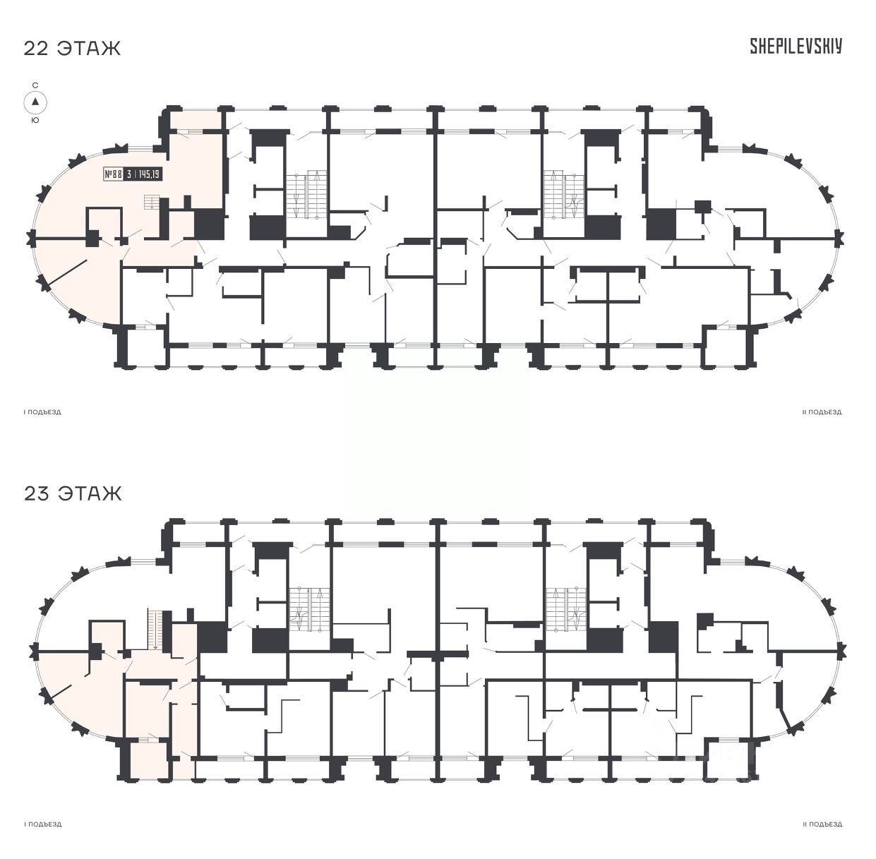 3-ком. квартира 88 на 22 и 23 этаже в секции 1 Дома SHEPILEVSKIY (Шепилевский)