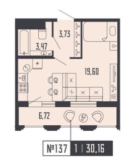Студия 137 на 12 этаже в секции 2 Дома SHEPILEVSKIY (Шепилевский)