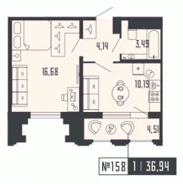 1-ком. квартира 158 на 16 этаже в секции 2 Дома SHEPILEVSKIY (Шепилевский)