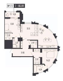 2-ком. квартира 172 на 20 этаже в секции 2 Дома SHEPILEVSKIY (Шепилевский)