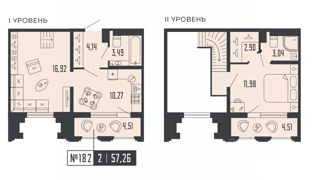 2-ком. квартира 182 на 22 и 23 этаже в секции 2 Дома SHEPILEVSKIY (Шепилевский)