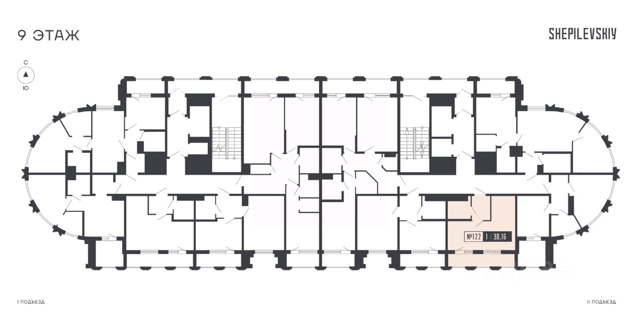 Студия 122 на 9 этаже в секции 2 Дома SHEPILEVSKIY (Шепилевский)