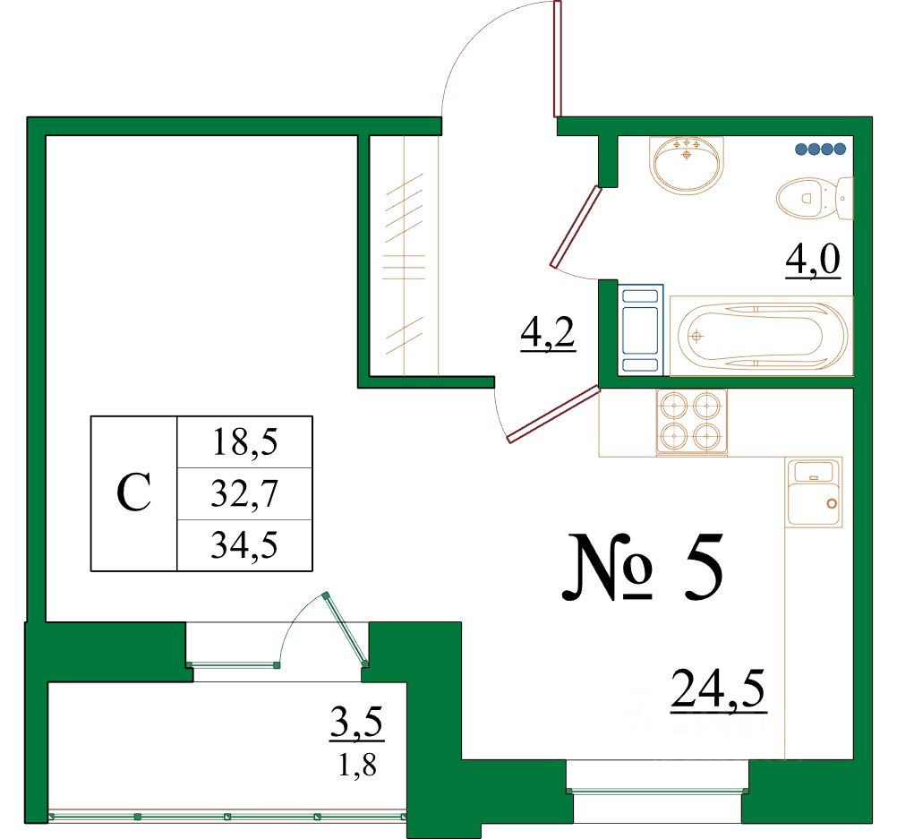 Продаётся студия в сданном доме (Корпус 2), срок сдачи: IV-кв. 2024, общей площадью 34.5 кв.м., на 7 этаже.