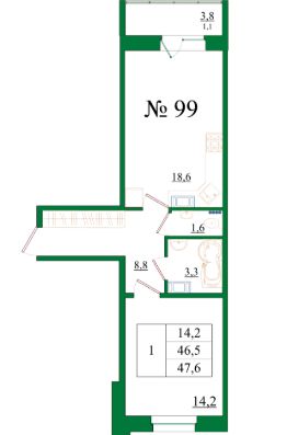 Продаётся 1-комнатная квартира в сданном доме (Корпус 2), срок сдачи: IV-кв. 2024, общей площадью 47.6 кв.м., на 8 этаже.