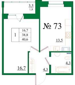 Продаётся 1-комнатная квартира в сданном доме (Корпус 1), срок сдачи: IV-кв. 2024, общей площадью 40.6 кв.м., на 4 этаже.