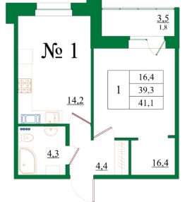 Продаётся 1-комнатная квартира в сданном доме (Корпус 5), срок сдачи: III-кв. 2025, общей площадью 41.1 кв.м., на 1 этаже.