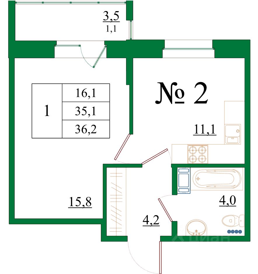 Продаётся 1-комнатная квартира в сданном доме (Корпус 5), срок сдачи: III-кв. 2025, общей площадью 36.2 кв.м., на 1 этаже.