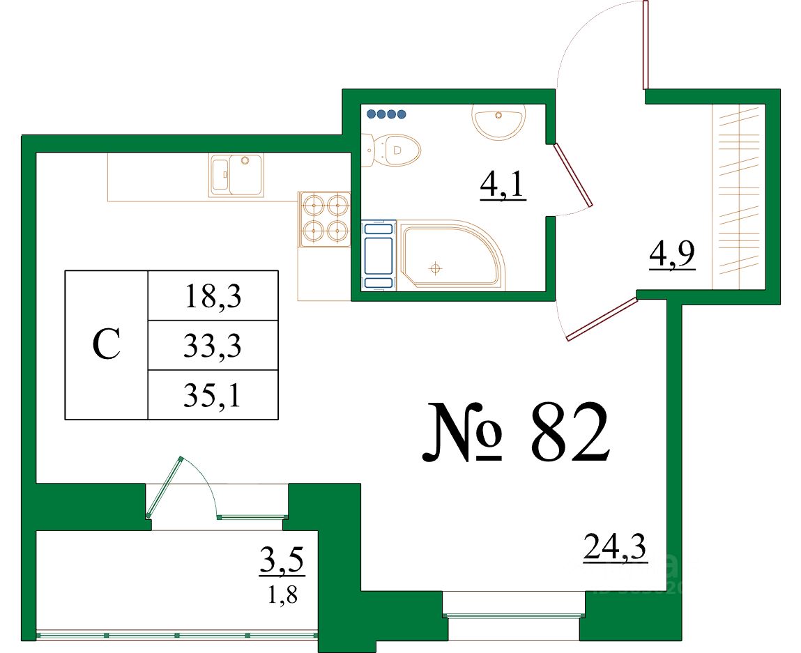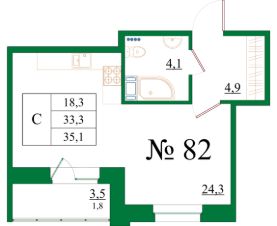 Продаётся студия в сданном доме (Корпус 5), срок сдачи: III-кв. 2025, общей площадью 35.1 кв.м., на 6 этаже.