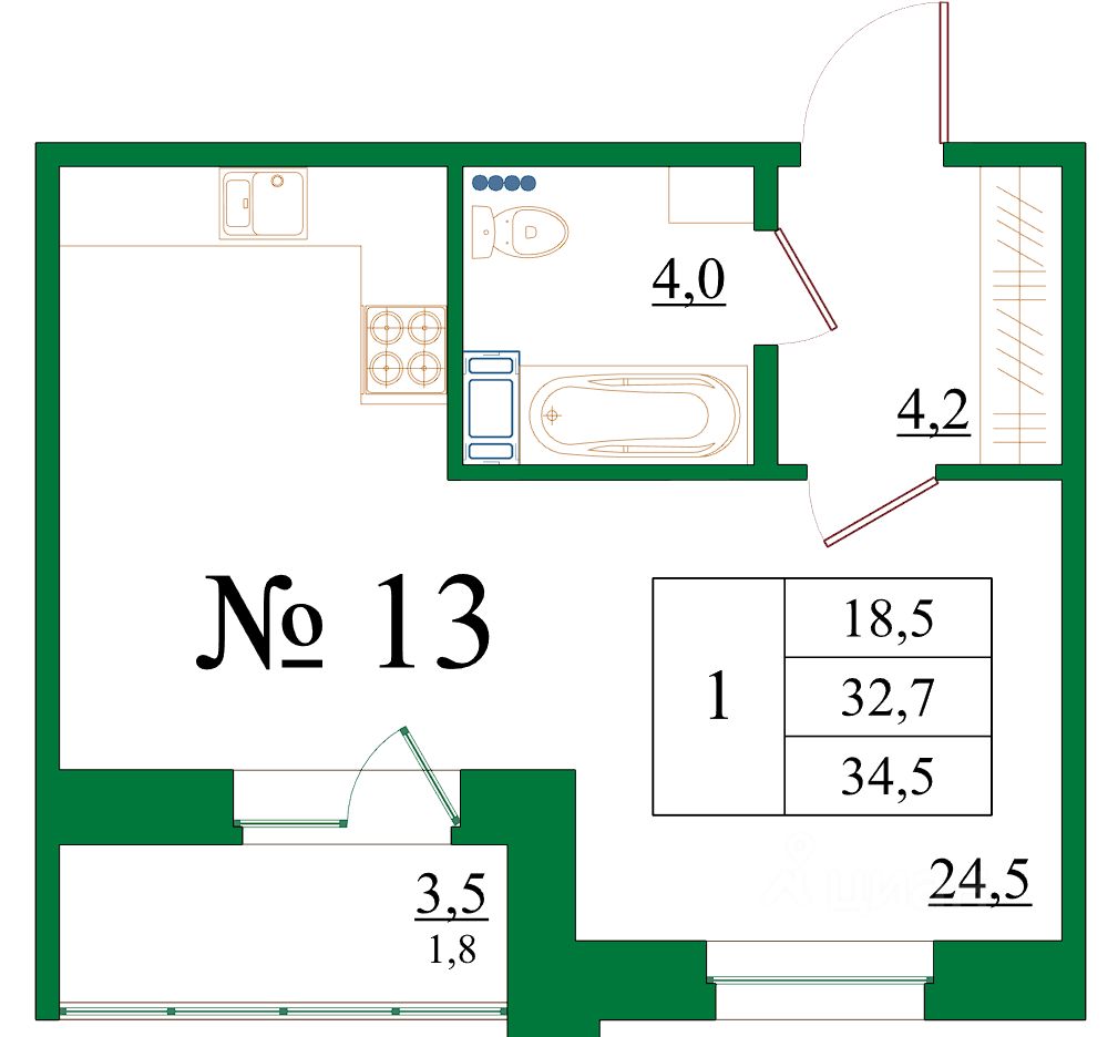 Продаётся студия в сданном доме (Корпус 5), срок сдачи: III-кв. 2025, общей площадью 34.5 кв.м., на 6 этаже.
