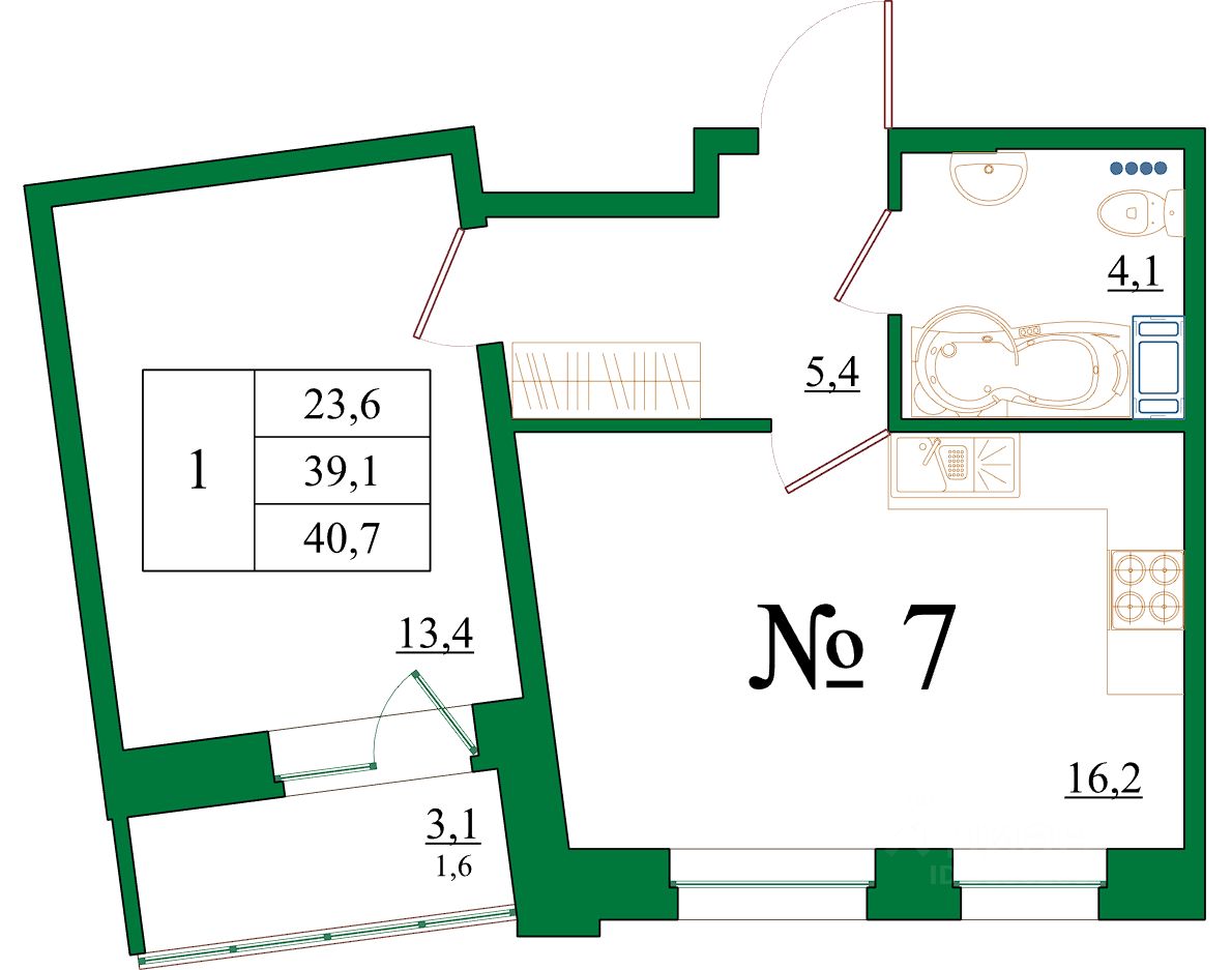 Продаётся 1-комнатная квартира в сданном доме (Красносельское шоссе, 4Ак2 (Корпус 3)), срок сдачи: III-кв. 2025, общей площадью 40.7 кв.м., на 7 этаже.