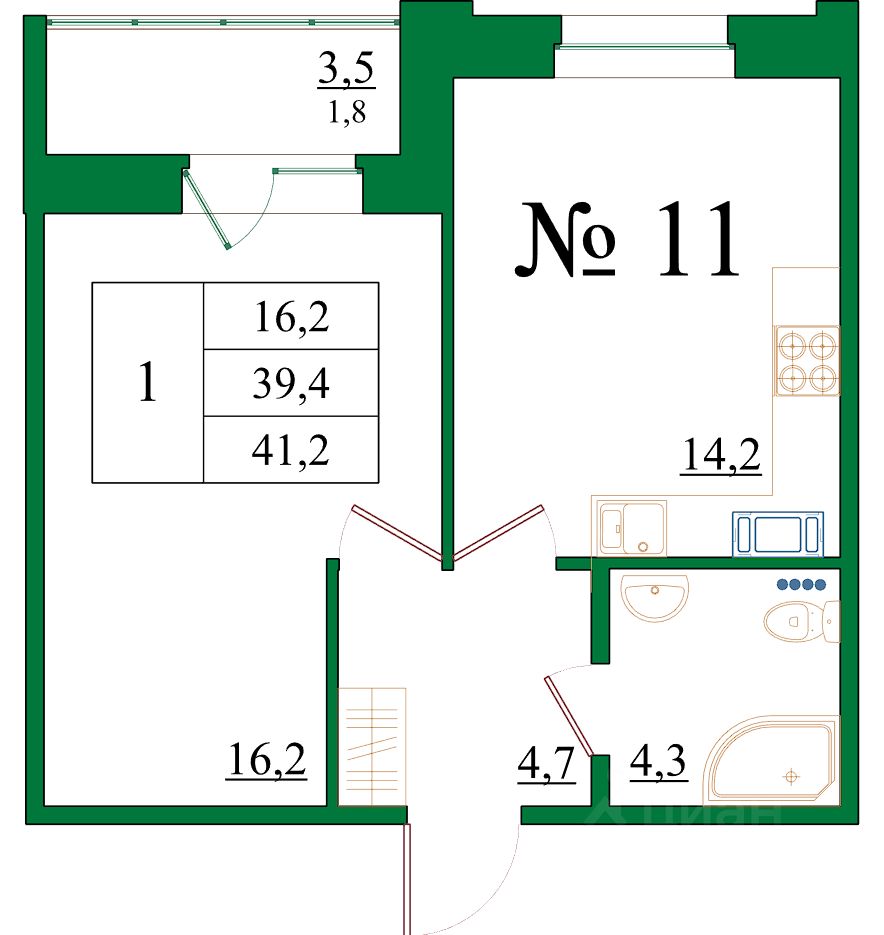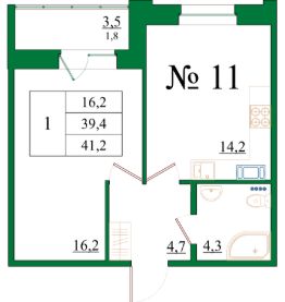 Продаётся 1-комнатная квартира в сданном доме (Красносельское шоссе, 4Ак2 (Корпус 3)), срок сдачи: III-кв. 2025, общей площадью 41.2 кв.м., на 7 этаже.
