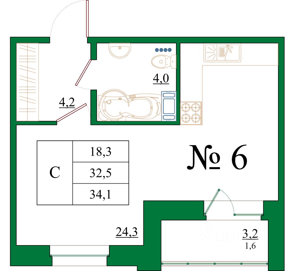Продаётся студия в сданном доме (Красносельское шоссе, 4Ак2 (Корпус 3)), срок сдачи: III-кв. 2025, общей площадью 34.1 кв.м., на 8 этаже.