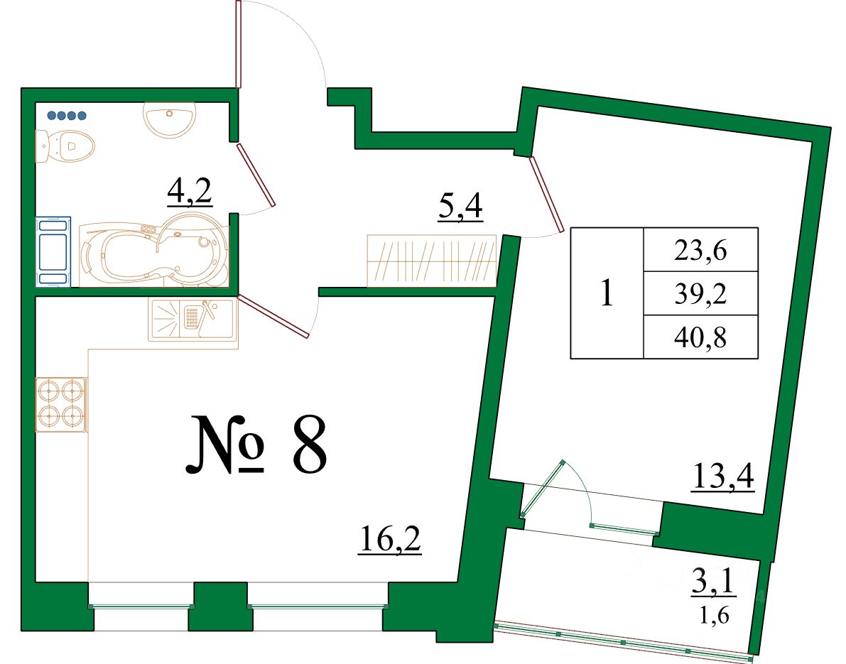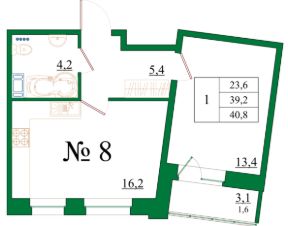 Продаётся 1-комнатная квартира в сданном доме (Красносельское шоссе, 4Ак2 (Корпус 3)), срок сдачи: III-кв. 2025, общей площадью 40.8 кв.м., на 2 этаже.